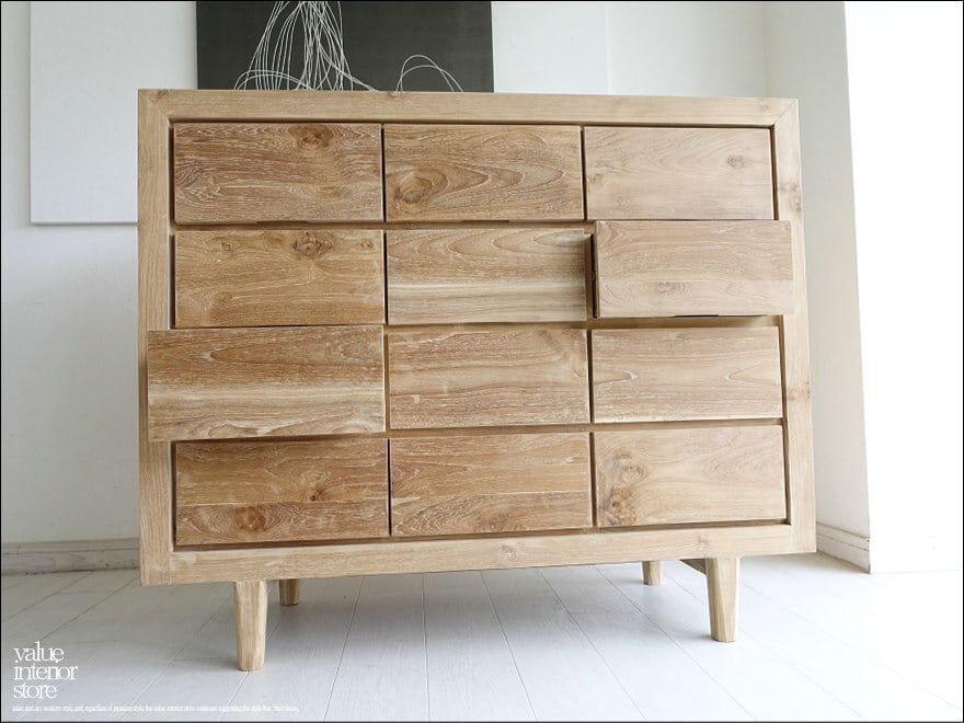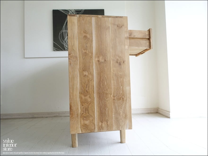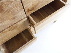 無塗装のナチュラルなチーク材の質感を活かしたチェスト。程よいサイズの引き出しで便利に収納できます。使い勝手の良いシンプルなチェストはいつの時代にも愛され永く愛用され引き継いでいかれるものですね。チークは良質な油を含みますので、徐々にいわゆるチーク色に色に変化していく過程もお楽しみいただけます。