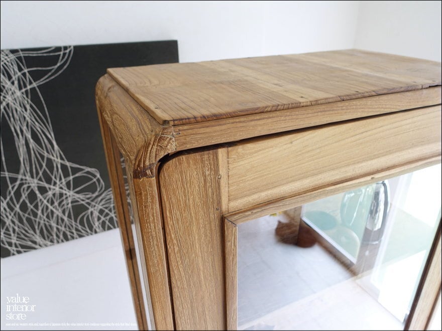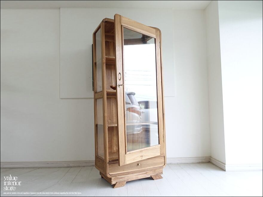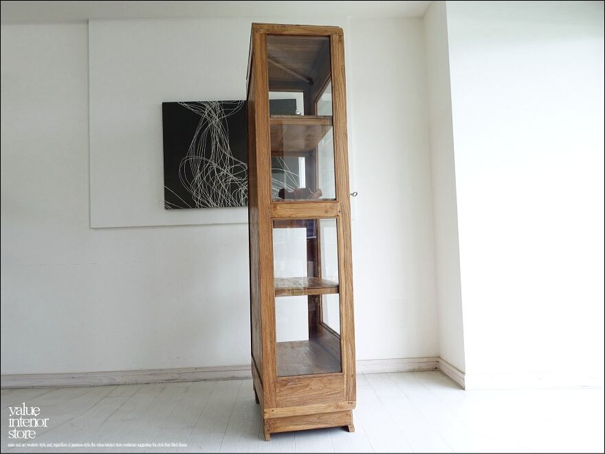 チーク無垢材 ヴィンテージキャビネット/EK 食器棚 ショーケース 陳列棚 店舗什器 アンティーク 飾り棚 再生家具 表面再仕上 三大銘木 H174cm