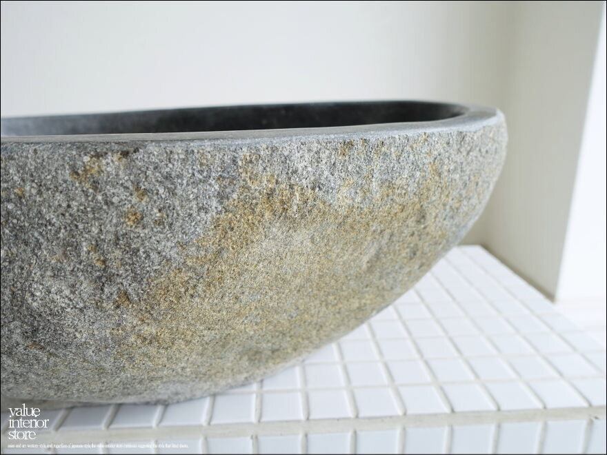 一つとして同じ形のない自然に作られたボウル状の形と色合いや質感に、落ち着いた和の雰囲気が感じられる自然石の洗面ボウル。
