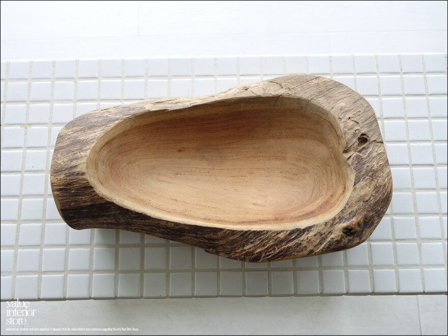 チーク総無垢 プリミティブトレイ 飾り鉢N30cm ボウル 小物入れ ナチュラル 天然木 鉢 入れ物 天然オイル仕上げ 世界三大銘木