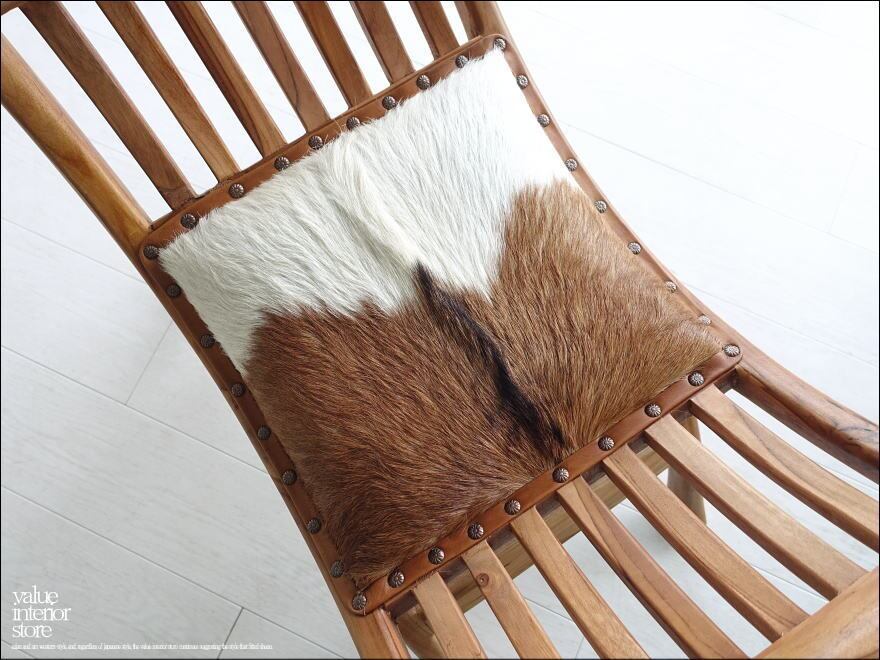 チーク材 無垢材 シングルソファfurPuti/03 ベンチ 椅子 イス スツール 本皮 毛皮 革製 一人掛け 皮張り チェア 銘木家具