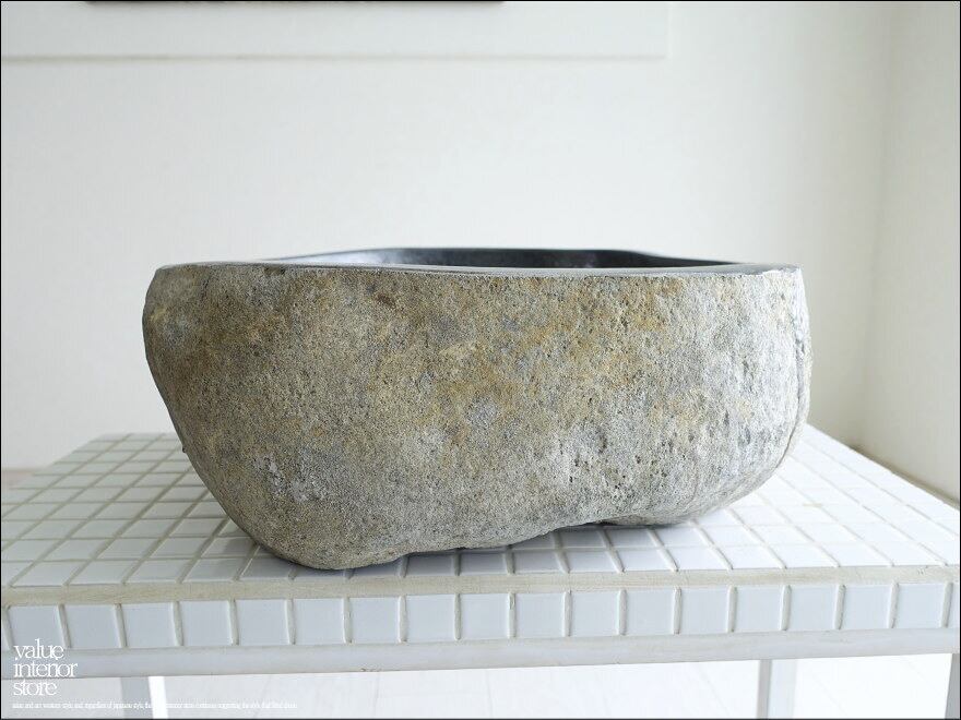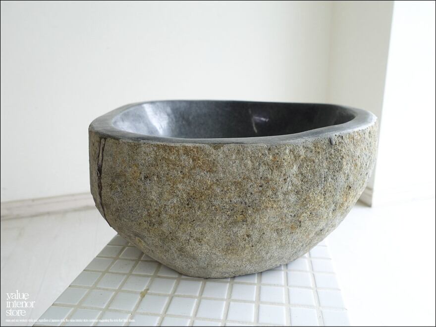 一つとして同じ形のない自然に作られたボウル状の形と色合いや質感に、落ち着いた和の雰囲気が感じられる自然石の洗面ボウル。