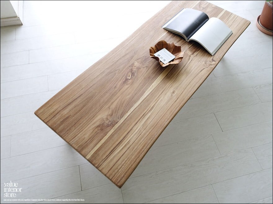一目見ただけで品質の良さを木肌から感じ取れるチーク無垢材のリビングテーブル。丸みを帯びた脚が柔らかな印象で、個性的な木目と油分を含むチーク材独特のコントラストのある表面を全面から感じていただけます。おくつろぎをいただくお部屋の中心となるリビングで、落ち着きのある雰囲気をぜひお楽しみください。
