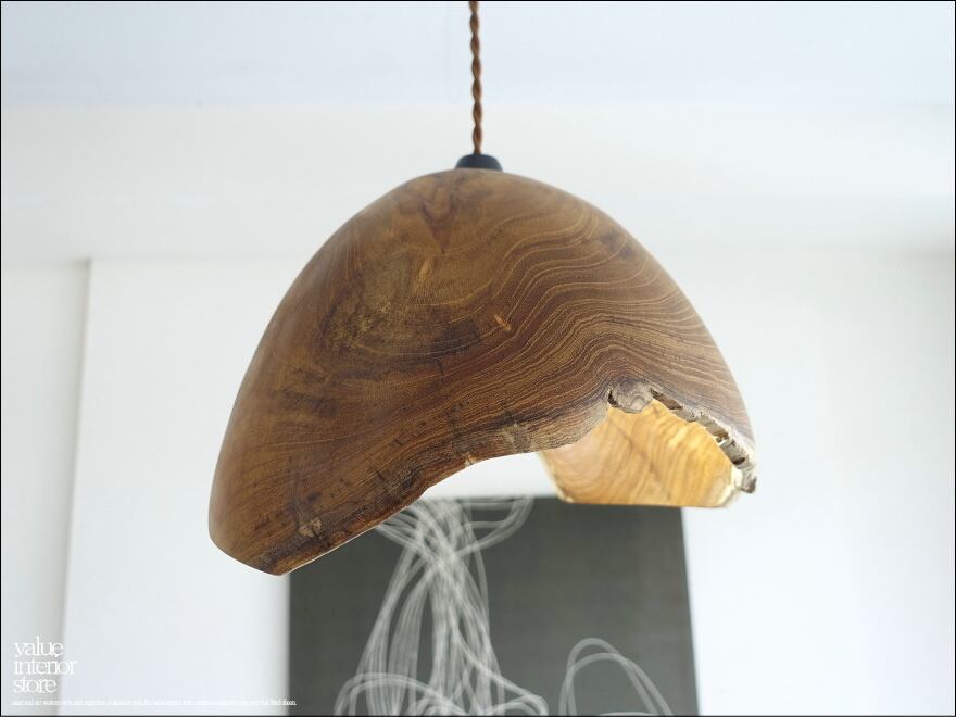 チーク無垢材 ペンダントライトkugel/05 天井照明 照明器具 ランプシェード 吊り下げ灯 明かり 削り出し 世界三大銘木