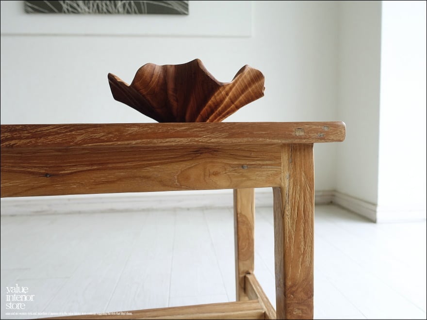 ◇チーク無垢材は人間のお肌同様に、長時間、直射日光や冷暖房の風のあたる場所や湿気、乾燥が著しい場所を嫌います。反りや割れ、退色の原因になりますのでお避けください。