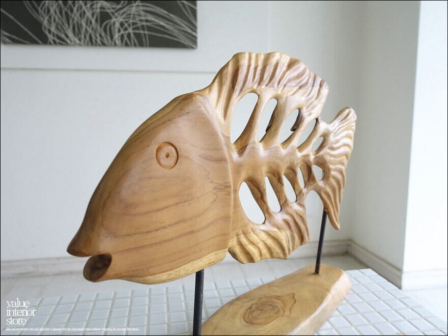 何とも癒されるユニークなチーク材の魚のオブジェ。変化に富んだ無垢材の木肌を面白く使い味のあるテイストとなっています。カフェのアクセント作りにぜひお役立てください。