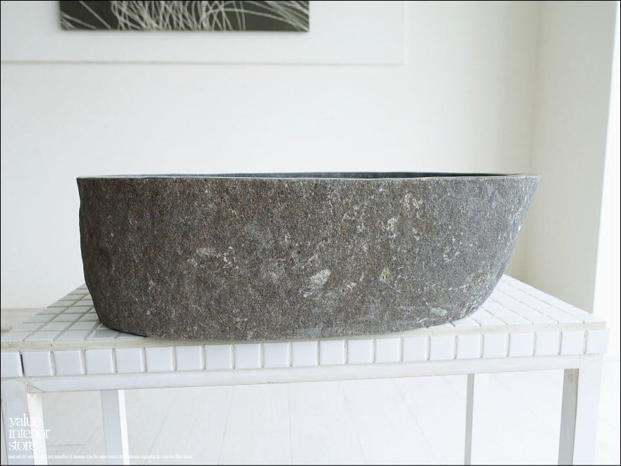 一つとして同じ形のない自然に作られたボウル状の形と色合いや質感に、落ち着いた和の雰囲気が感じられる自然石の洗面ボウル。