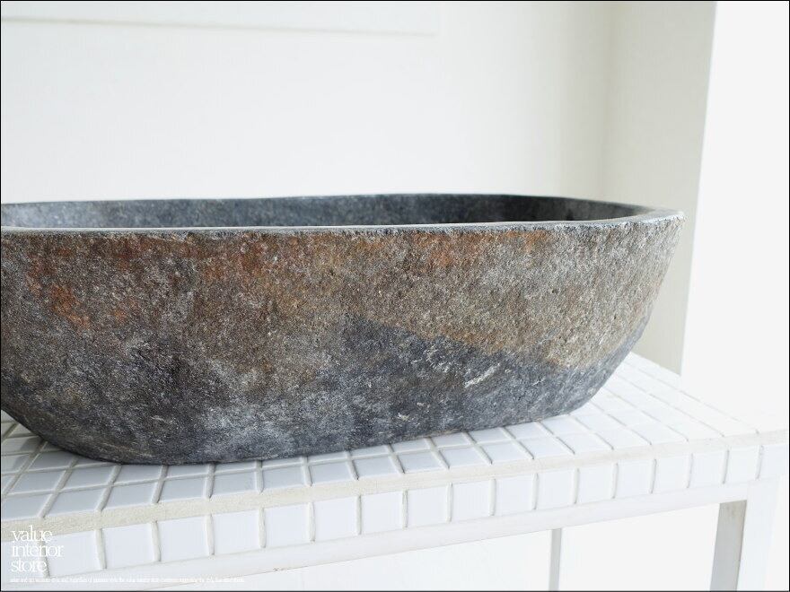 手洗鉢 自然石 洗面ボウルL-F08 洗面器 手洗いボウル 手洗い器 ウォッシュボウル 洗面資材 洗面材料 W49.5 x D36.5 x H14.5cm