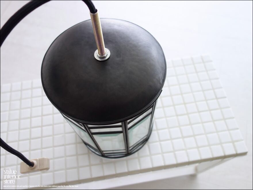 真鍮をアンティークブラック塗装してシャビーな雰囲気が魅力的なガラスペンダントライト。