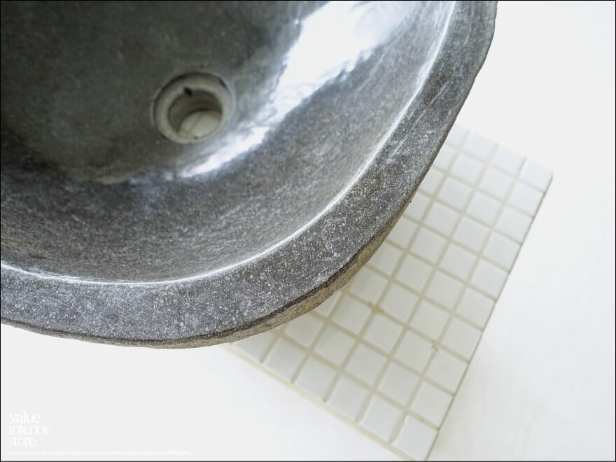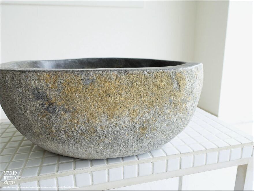 一つとして同じ形のない自然に作られたボウル状の形と色合いや質感に、落ち着いた和の雰囲気が感じられる自然石の洗面ボウル。