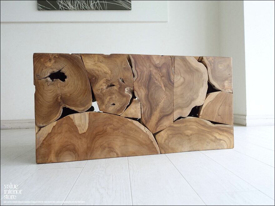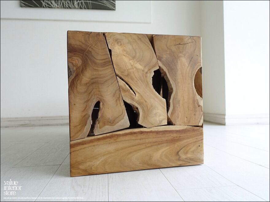 チークをブロックのような形に組み合わせたデザインでインテリアとしても配置しやすく、椅子だけでなくディスプレイとして使っても素敵です。幅広いインテリアにも馴染み、ナチュラルで素朴な雰囲気もお楽しみいただけます。ぜひこの機会にどうぞ。