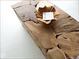 チーク無垢材 ブロックベンチN/A18 椅子 長椅子 スツール ナチュラル 手作りチェア 銘木家具 イス 無垢材家具 木目 三大銘木