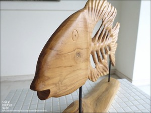 チーク無垢材 置物/魚 装飾 魚の形のオブジェ カフェ装飾 飾り フィッシュ デコレーション fish 無垢材アート 什器 置き物 W49xH36cm