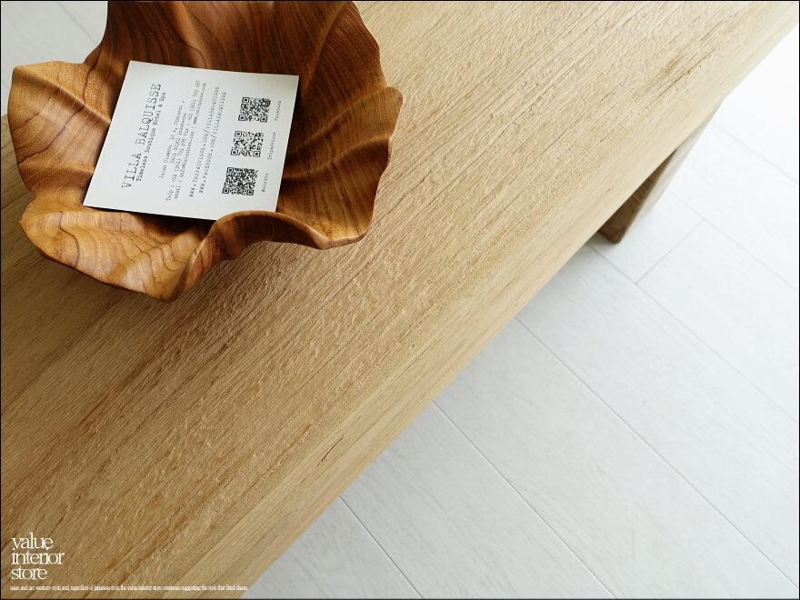 ◇チーク材は世界三大銘木の一つとして知られ、硬さと張りがあり良質の天然油分を含むことから耐久性に優れています。特に細かな美しい木目が特徴で家具や建材など世界中で人気の高い木材です。