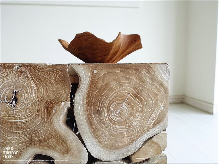 見る角度によって見え方が違うユニークなスツールです。チークをブロックのような形に組み合わせたデザインでインテリアとしても配置しやすく、椅子だけでなくディスプレイとして使っても素敵ですね。ホワイトの塗装を施してから磨き削ることで、木目に程よくホワイトが入り込む独特な風合い。表面加工にもとても手間を掛けたお品です。幅広いインテリアにも馴染み、ペースダウンした雰囲気も存分にお楽しみいただけます。