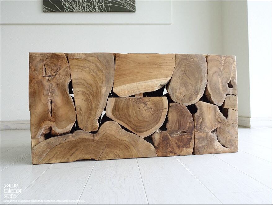 チークをブロックのような形に組み合わせたデザインでインテリアとしても配置しやすく、椅子だけでなくディスプレイとして使っても素敵です。幅広いインテリアにも馴染み、ナチュラルで素朴な雰囲気もお楽しみいただけます。ぜひこの機会にどうぞ。