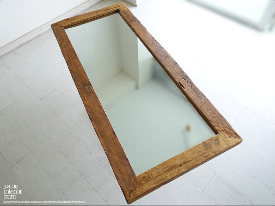 オールドチーク総無垢 ミラー140cm L/2 姿見 鏡 全身鏡 古材 全身用 手作り ナチュラル レトロ 世界三大銘木 60 x 140cm