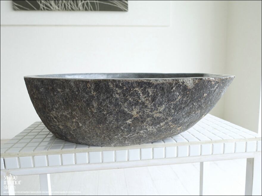 一つとして同じ形のない自然に作られたボウル状の形と色合いや質感に、落ち着いた和の雰囲気が感じられる自然石の洗面ボウル。