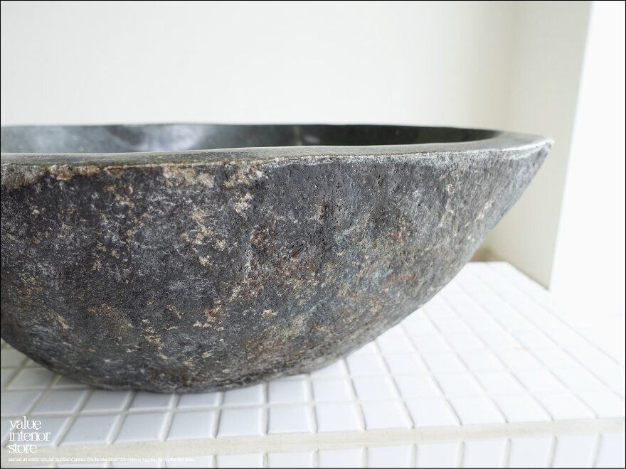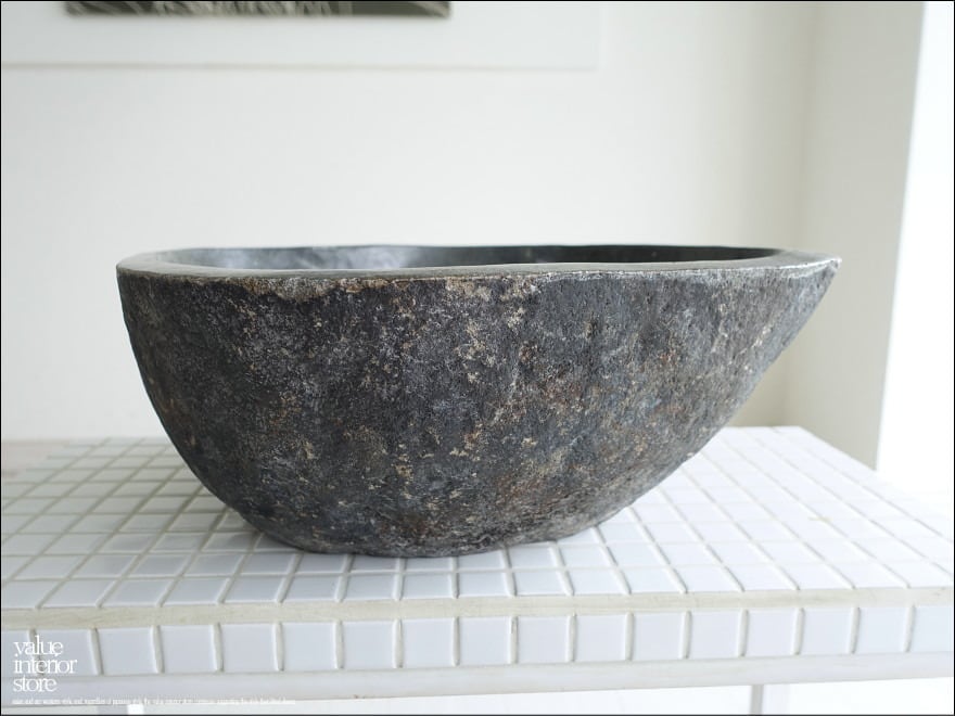 一つとして同じ形のない自然に作られたボウル状の形と色合いや質感に、落ち着いた和の雰囲気が感じられる自然石の洗面ボウル。