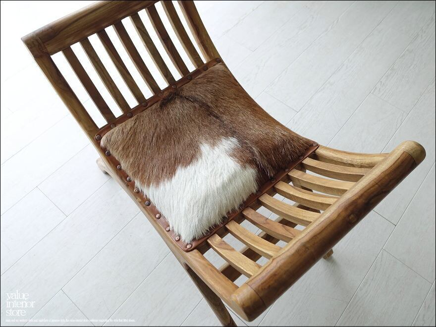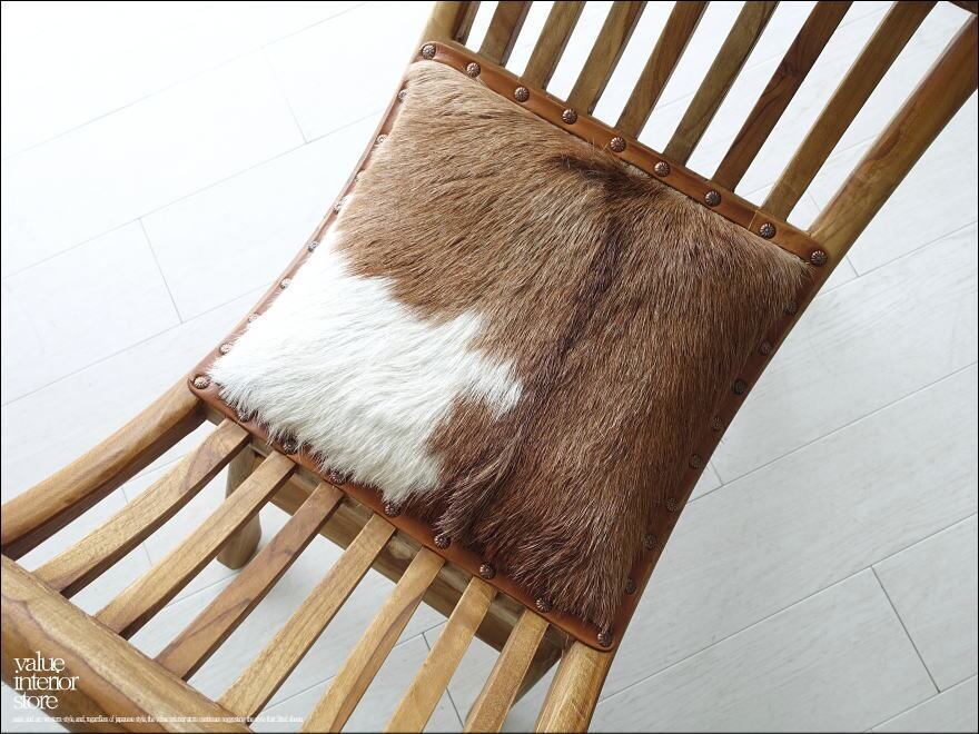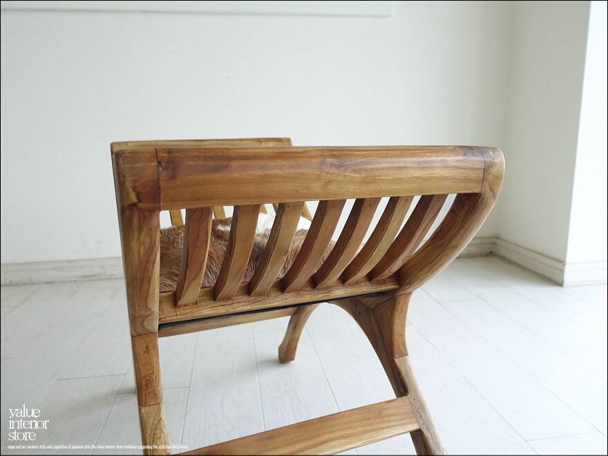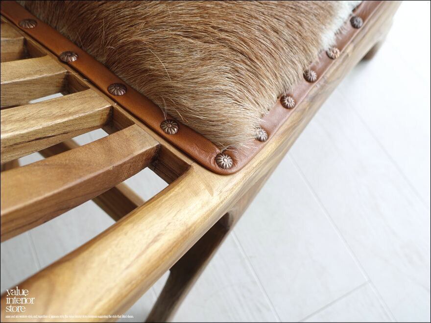 チーク材 無垢材 シングルソファfurPuti/06 ベンチ 椅子 イス スツール 本皮 毛皮 革製 一人掛け 皮張り チェア 銘木家具