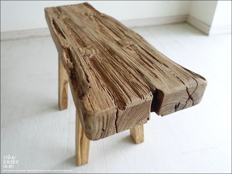 オールドチークベンチ81cm スツール 長椅子 古材家具 一枚板 無垢材 椅子 イス プリミティブ 一点物 世界三大銘木