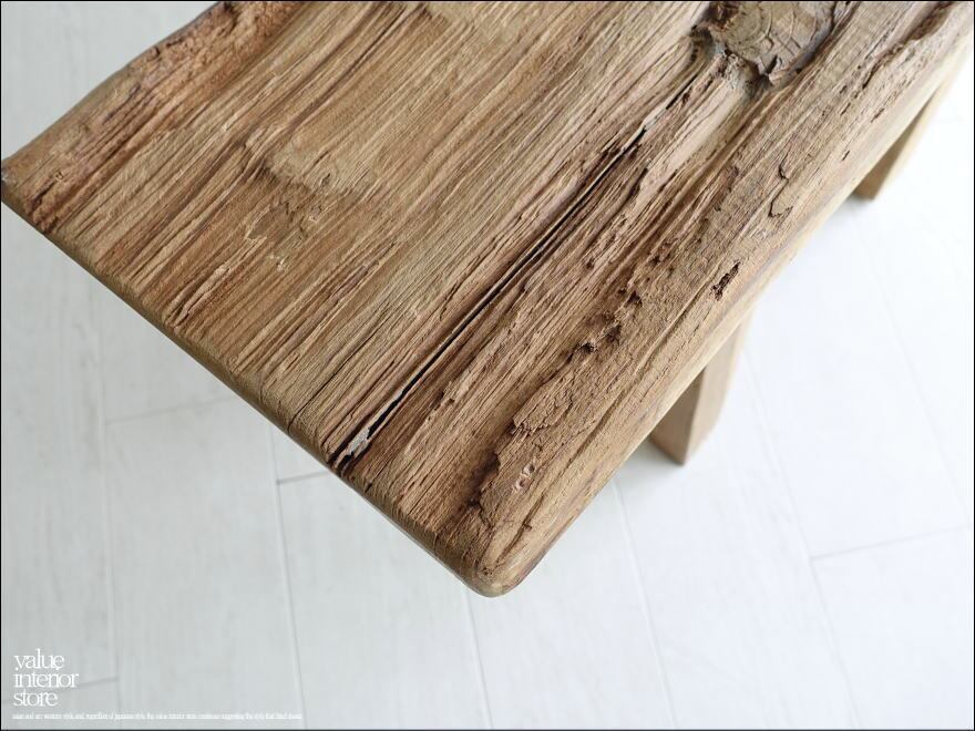 オールドチークならではの味のある雰囲気が魅力のベンチ。一枚板の座面は厚みもあり長くお使いいただけるしっかりした作りです。チークならではの荒々しさと、古材ならではの変化に富んだ木肌が全体的に見られ味わい深く仕上がっています。職人さんが丹精こめて作った印象に溢れていて、きっとお部屋をスローダウンした素敵な雰囲気に包んでくれます。ベンチだけでなくインテリアのディスプレイ台としてもステキです。