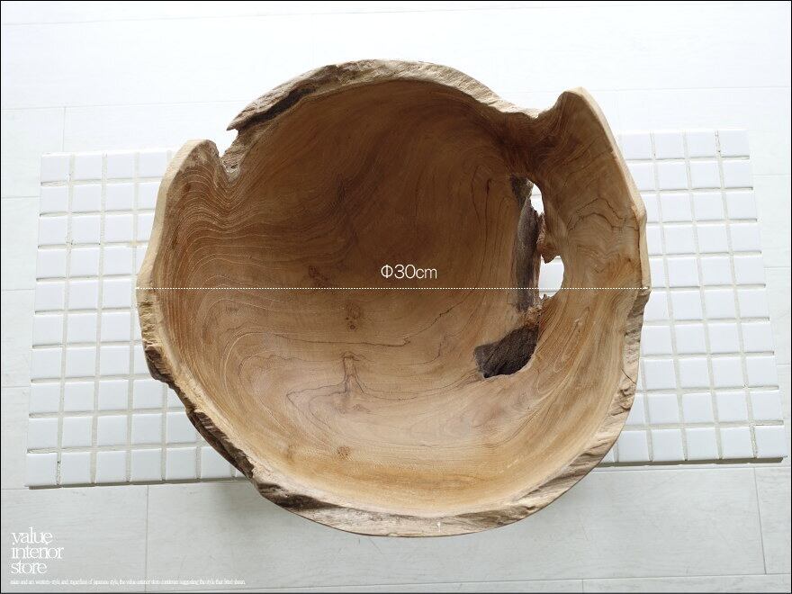 チーク無垢材 大型プリミティブボウルN30cm 入れ物 フルーツバスケット 無垢材トレイ 自然な様 ナチュラル 世界三大銘木