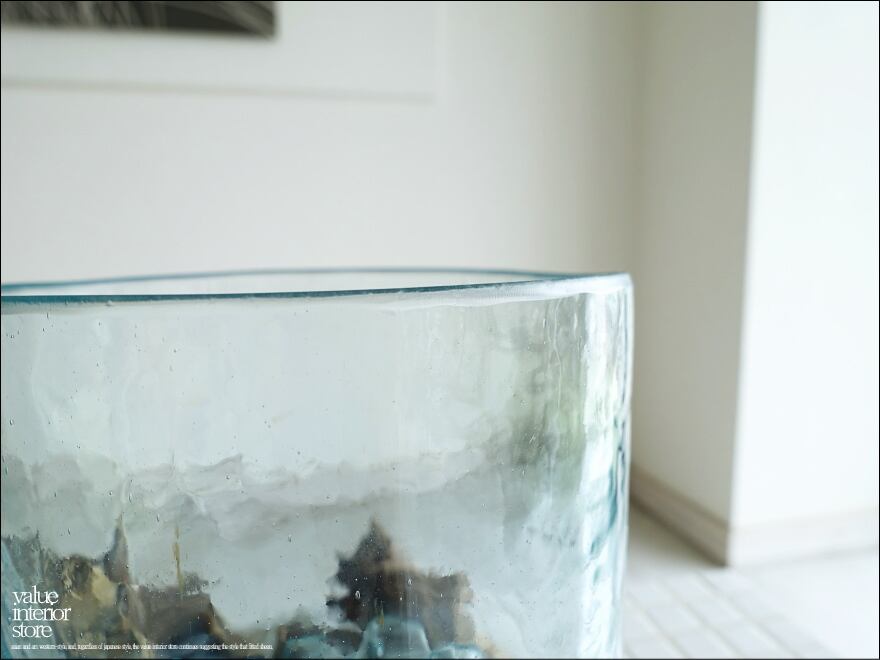 硝子フラワーベースKyli/LN-02 花瓶 メダカ鉢 めだか鉢 プリミティブガラスベース 吹きガラス 手作り 一点物 自然な様