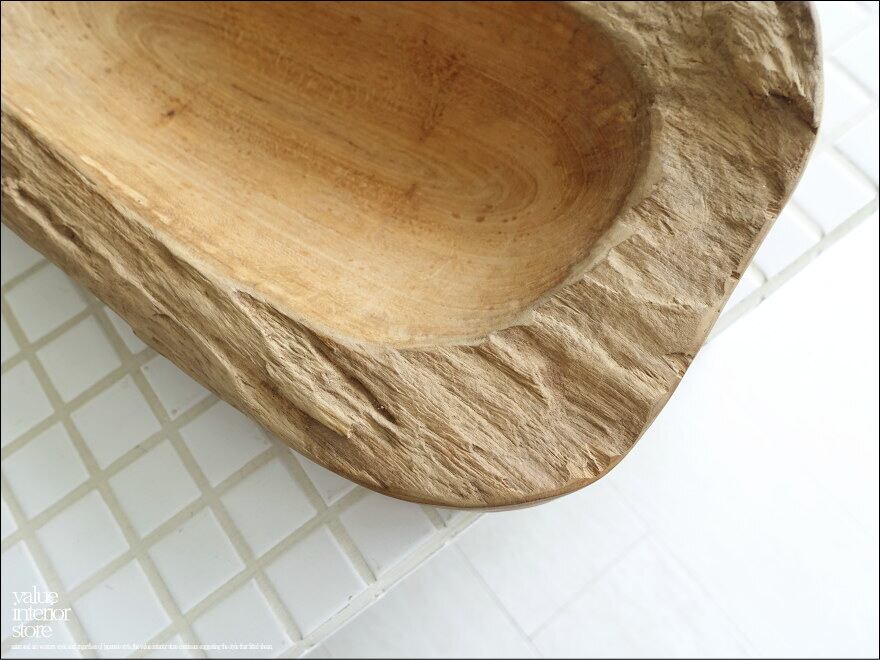 チーク総無垢 プリミティブトレイ 飾り鉢N30.5cm ボウル 小物入れ ナチュラル 天然木 鉢 入れ物 天然オイル仕上げ 世界三大銘木