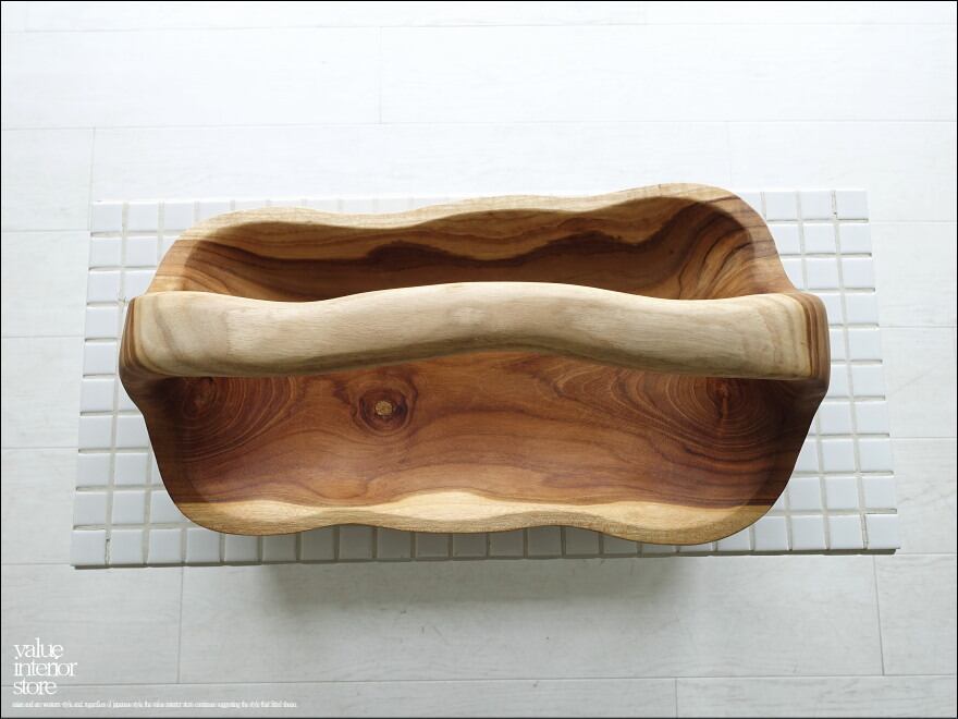 チーク無垢材 プリミティブトレイN02 カトラリートレイ フルーツトレイ フルーツバスケット 収納かご 削り出し 小物入れ 世界三大銘木