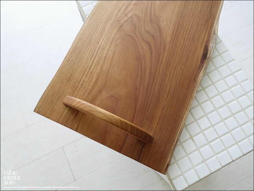 ナチュラルなチーク材の変化に富んだ形と木目が素敵なサービングトレイ。