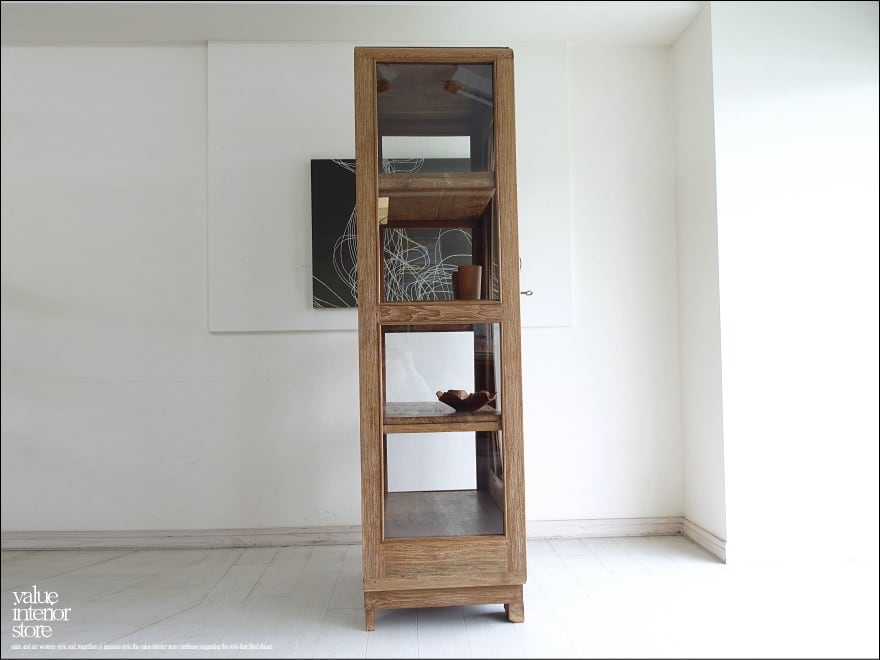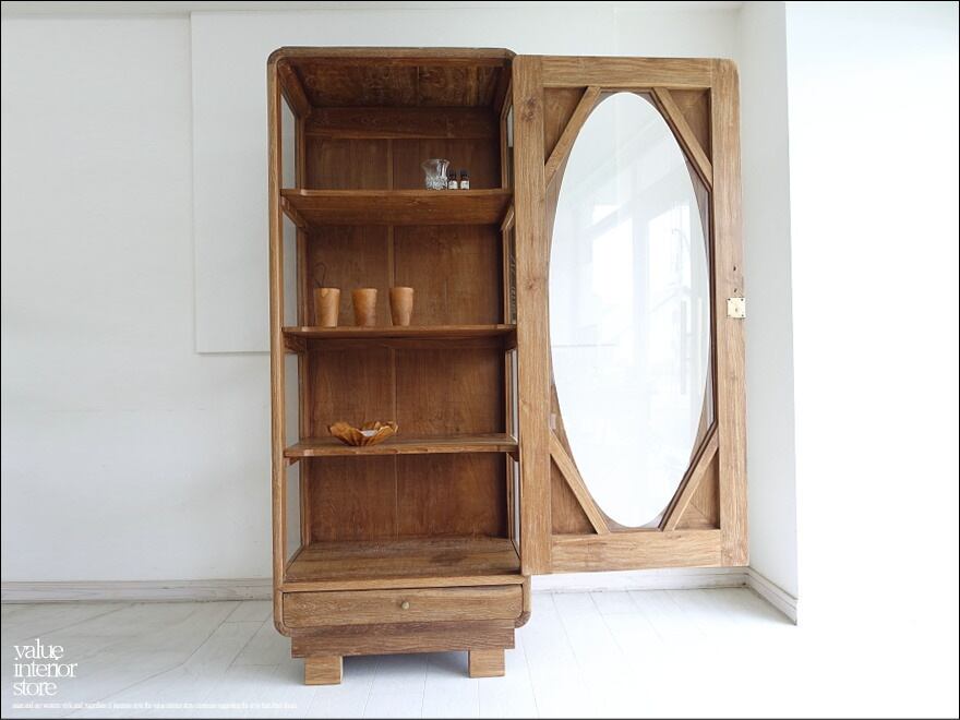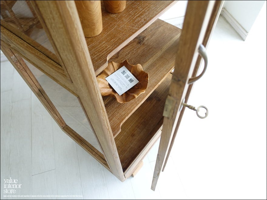チーク無垢材 ヴィンテージキャビネットBols 食器棚 ショーケース 陳列棚 什器 アンティーク飾り棚 再生家具 表面再仕上 世界三大銘木