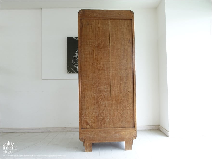 古い歴史を感じさせる佇まいが魅力のチーク総無垢のアンティークキャビネット。