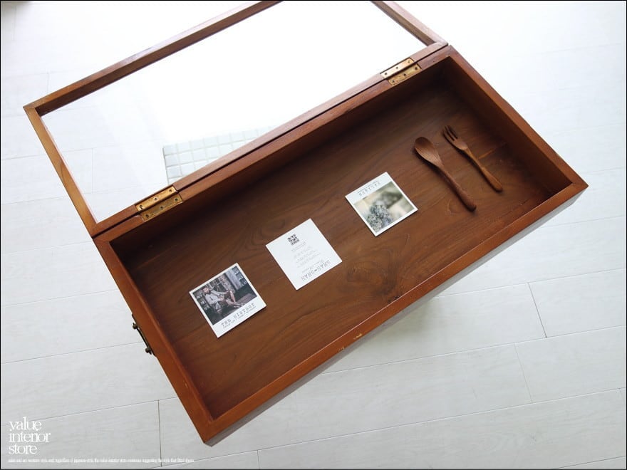 味わい深いオールドチークを使った卓上用のガラスショーケース。