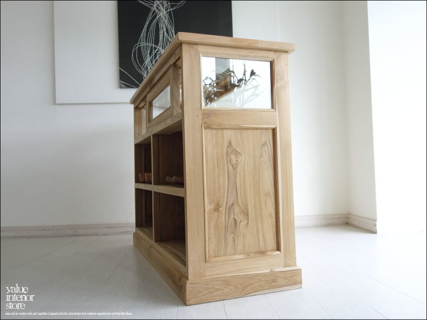 「 Y様 御予約商品 」チーク総無垢 ショーケースカウンターNatla ガラスケース 飾り棚 店舗什器 レジ台 シャビーシック 手作り 無垢材家具 W120cm