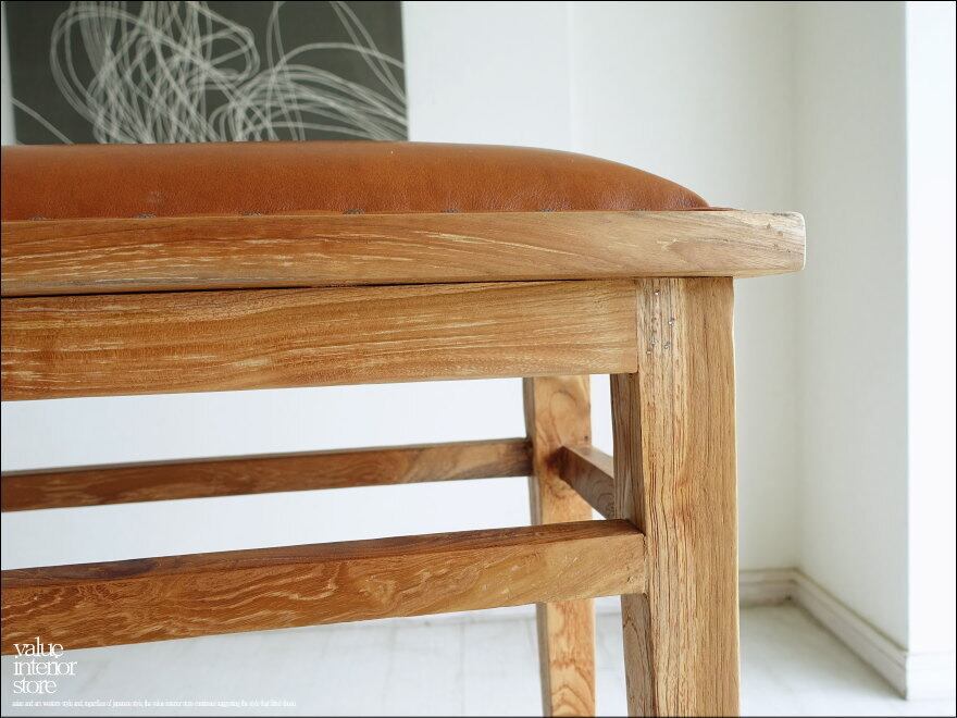 「 N様 サイズオーダー家具 」オールドチークレザーベンチLB115 本皮 長椅子 古材家具 二人掛けソファ 革張り 本革 イス 木製 レトロ 無垢材家具
