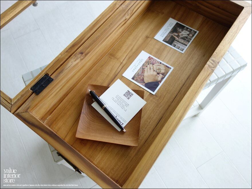 *チーク無垢材は人間のお肌同様に、長時間、直射日光や冷暖房の風のあたる場所や湿気、乾燥が著しい場所を嫌います。反りや割れ、退色の原因になりますのでお避けください。