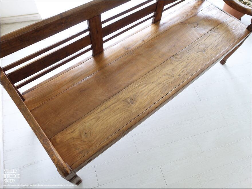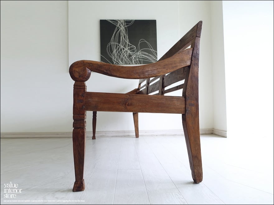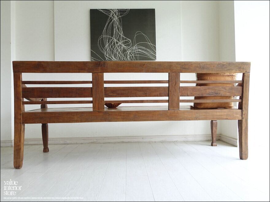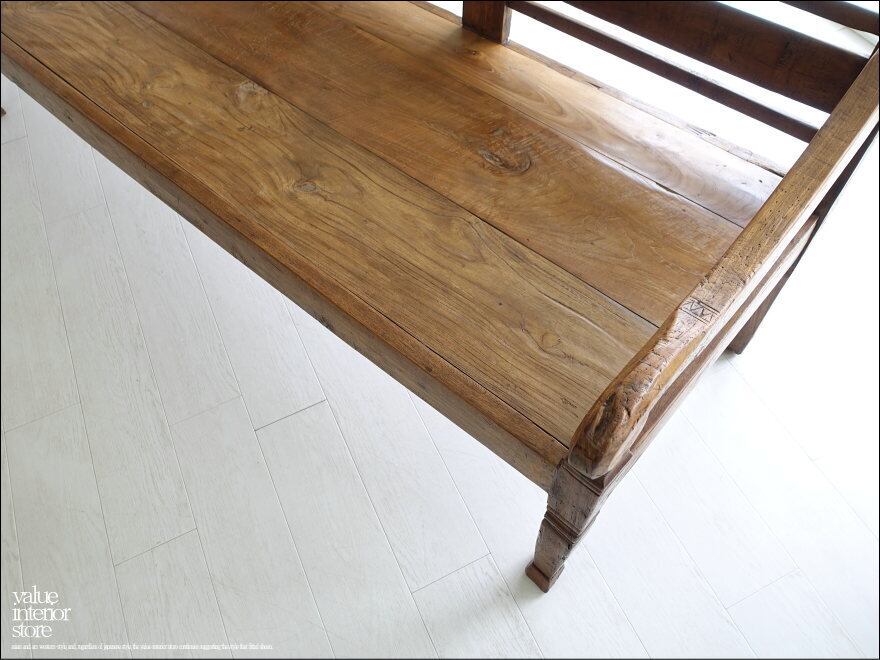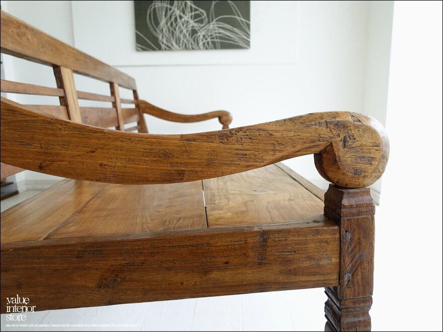 チーク無垢材 ヴィンテージソファAntika 長椅子 3人掛け トリプルソファ ソファー ベンチ アンティーク 一点物 再生家具 世界三大銘木 W195cm