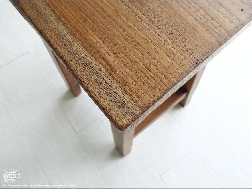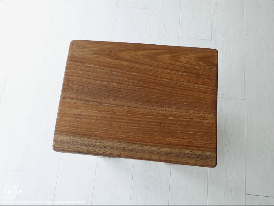 オールドチークならではの渋く落ち着いた雰囲気を持つ角型スツール。座面にはチーク材の個性的な木肌が現れています。角型の脚をさらにH字にそれぞれの脚をつなぐフレームを取り付けていますので、とてもしっかりとした頑丈な作りです。表面はワイヤーブラシで削り取ることで無垢材の素朴な質感を一層引き立たせています。
