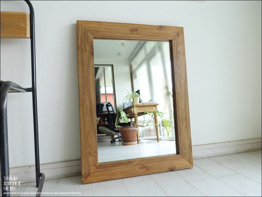古材 鏡 壁掛けミラー オールドチークミラー壁掛80/E01 レトロ 無垢材 古材家具 自然な様 無垢材家具 W60 x H80cm