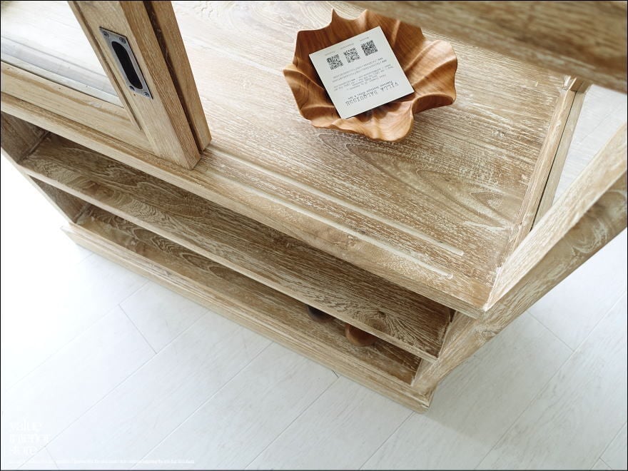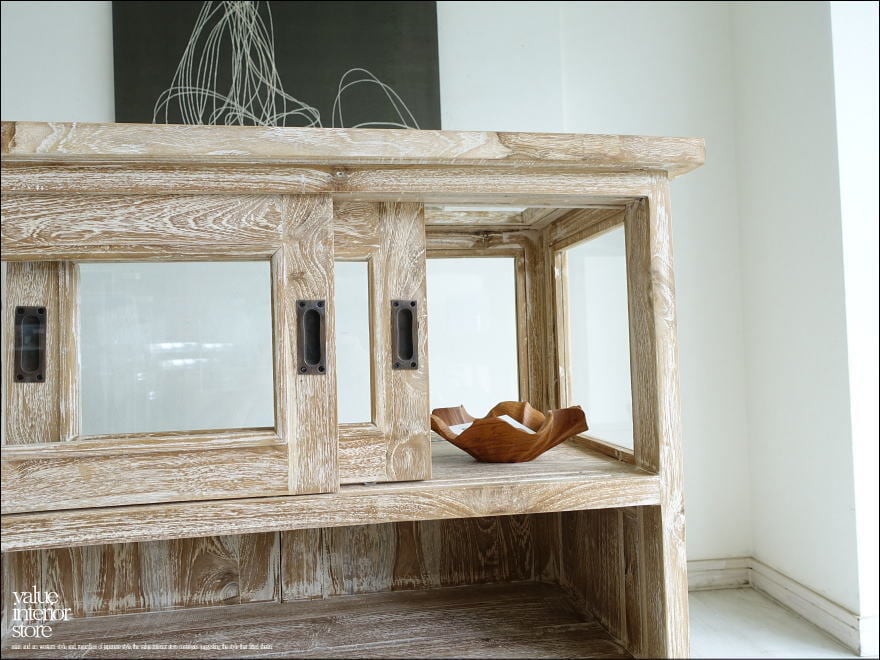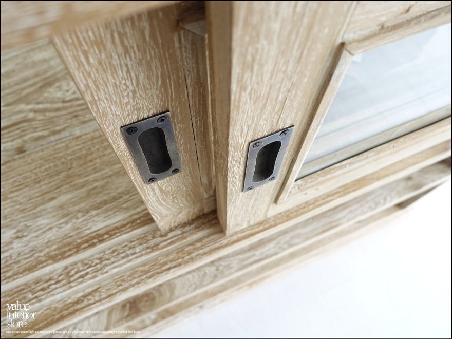 ・材質 : チーク総無垢、ガラス、真鍮(引戸取っ手)