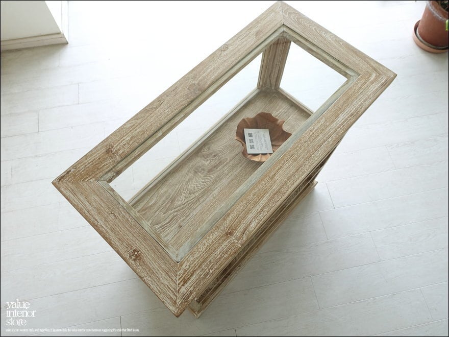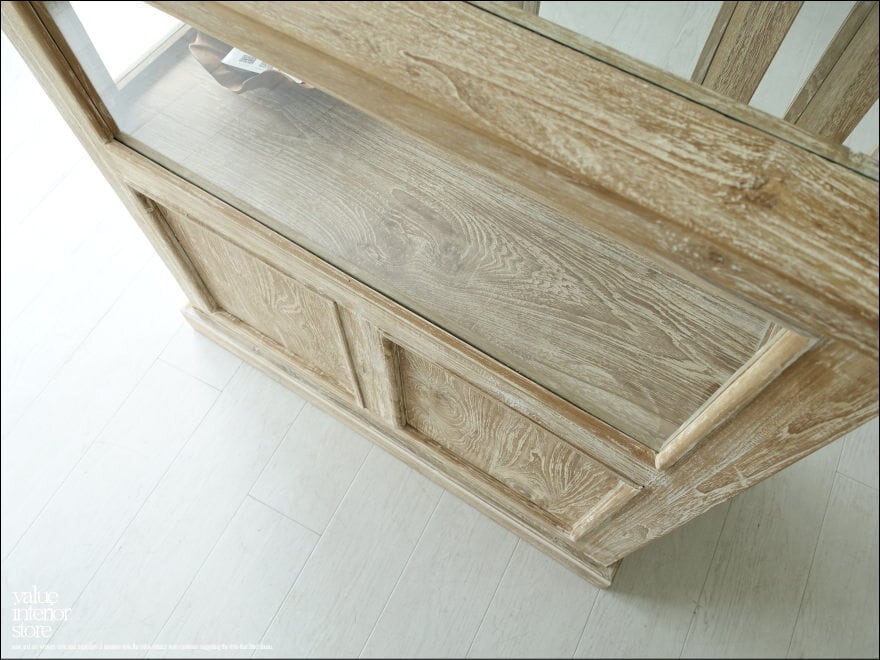 チーク無垢材 ショーケースカウンターQuese/90 ガラスケース 飾り棚 店舗什器 レジ台 シャビーシック 世界三大銘木
