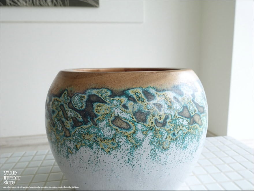 味のある木目と独特のカラーに塗られた色合いが魅力的なウッドポットです。コロンと可愛い形が魅力です。鉢カバーとして、小物入れやディスプレイ用などお好みで使えます。※ポットカバーとしてお使いの場合、中に受け皿を置いてご使用下さい。※底に多少凸凹がありますので、置いた時かたかたする場合がございます。予めご了承ください。