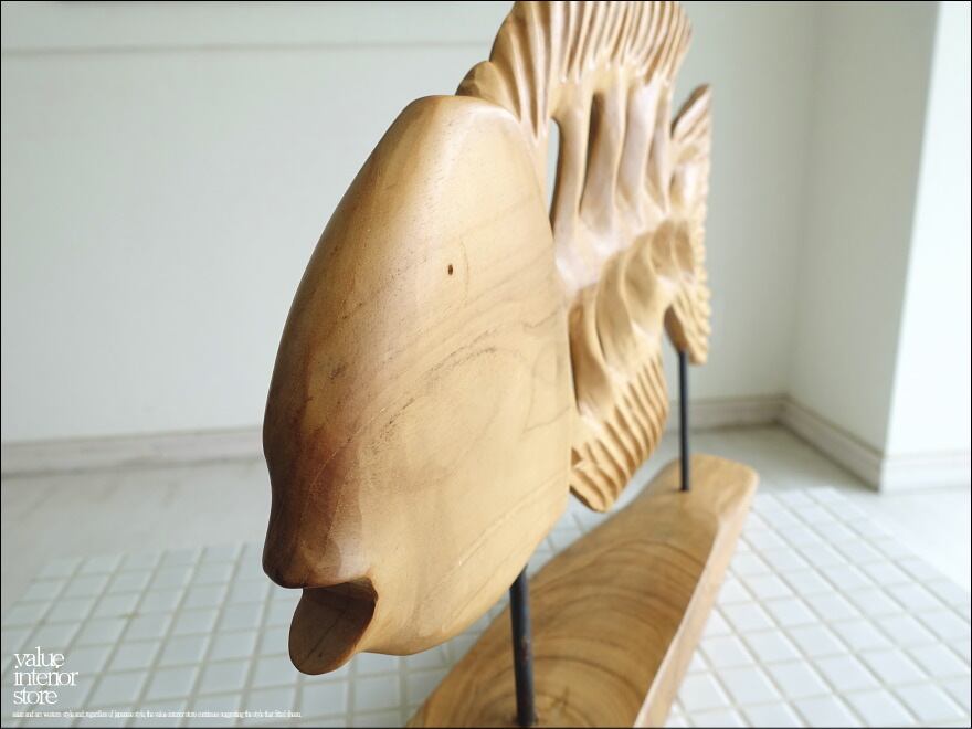 何とも癒されるユニークなチーク材の魚のオブジェ。変化に富んだ無垢材の木肌を面白く使い味のあるテイストとなっています。カフェのアクセント作りにぜひお役立てください。