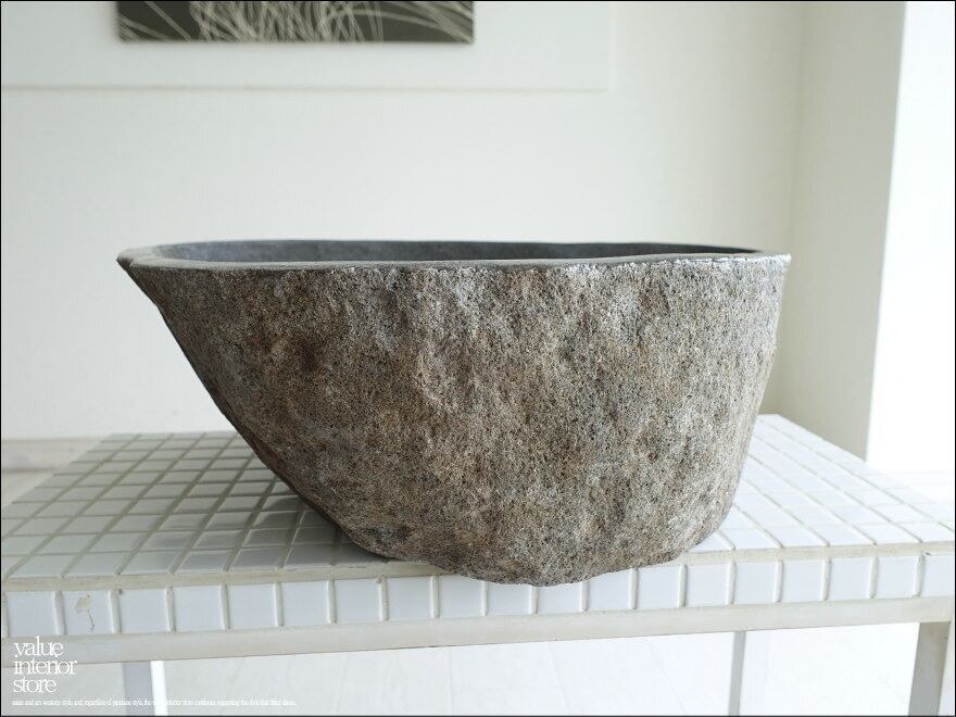 一つとして同じ形のない自然に作られたボウル状の形と色合いや質感に、落ち着いた和の雰囲気が感じられる自然石の洗面ボウル。