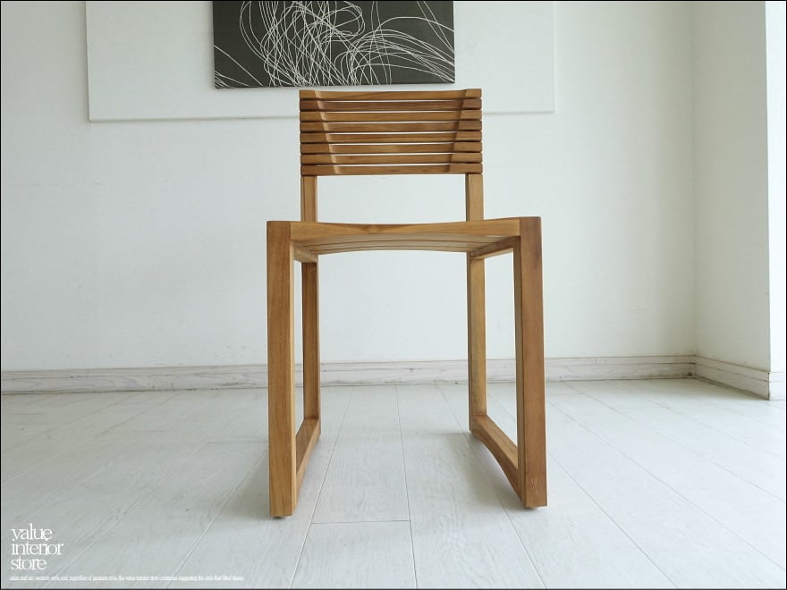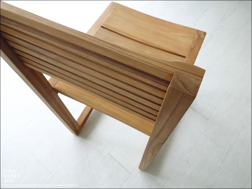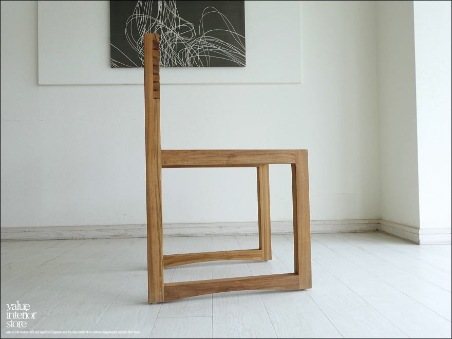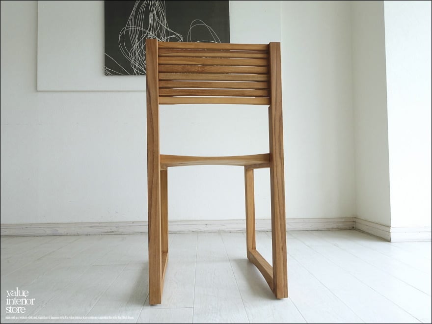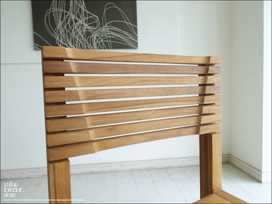 シンプルでナチュラルな無垢材の質感が伝わってくるダイニングチェア。フレームのチーク材はアンフィニッシングのナチュラルで、渋く変わり行くチーク材独特の色の変化(いわゆる徐々にチークカラーへの変化)をお楽しみいただけます。