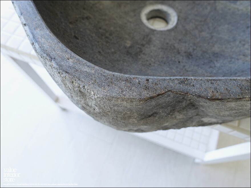 手洗鉢 自然石 洗面ボウルL-A32 洗面器 手洗いボウル 手洗い器 ウォッシュボウル 洗面資材 洗面材料 W53 x D44 x H14cm