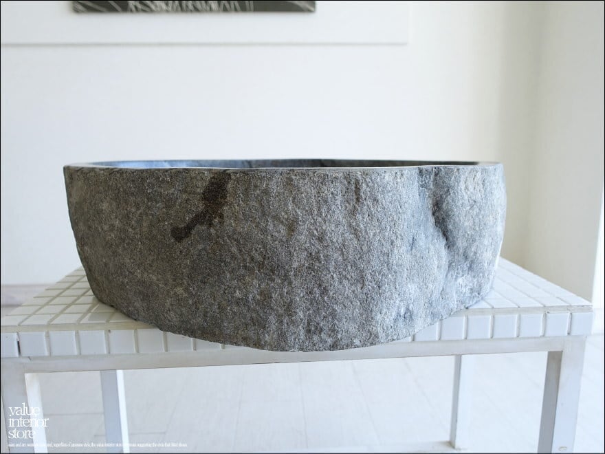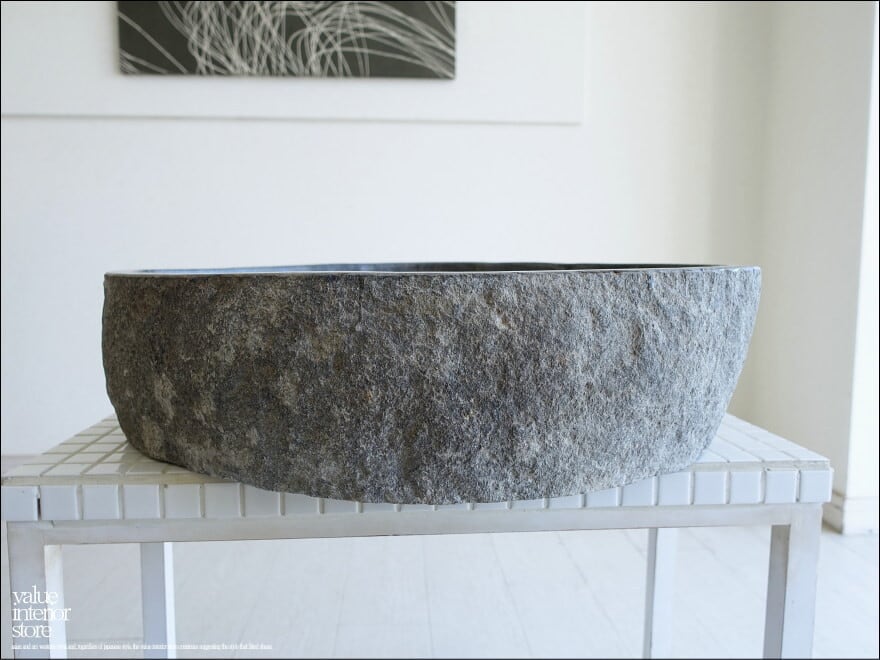 一つとして同じ形のない自然に作られたボウル状の形と色合いや質感に、落ち着いた和の雰囲気が感じられる自然石の洗面ボウル。