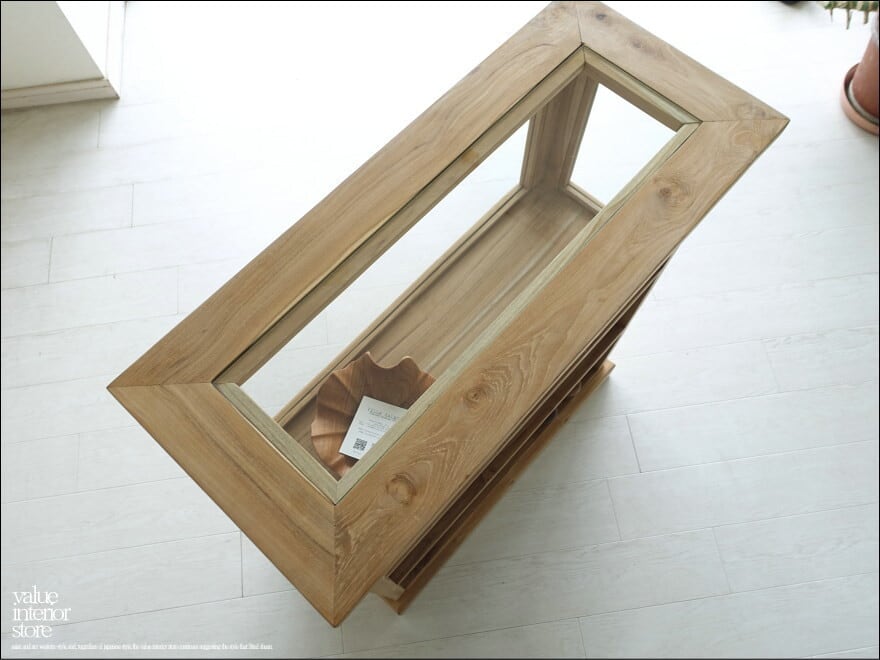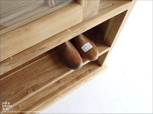 チーク無垢材 ショーケースカウンターNatla/H100 ガラスケース 店舗什器 レジ台 コレクションケース 飾り棚 手作り 無垢材家具