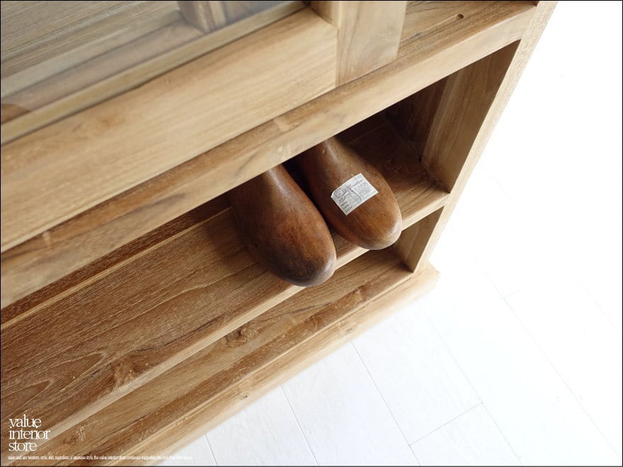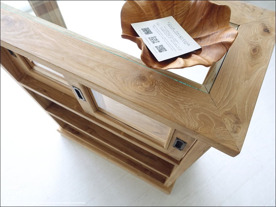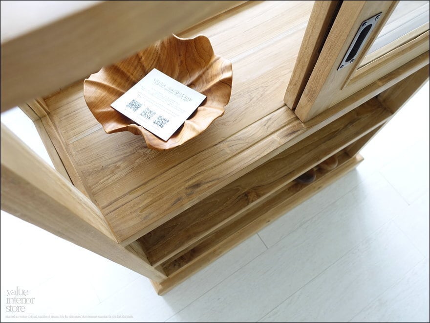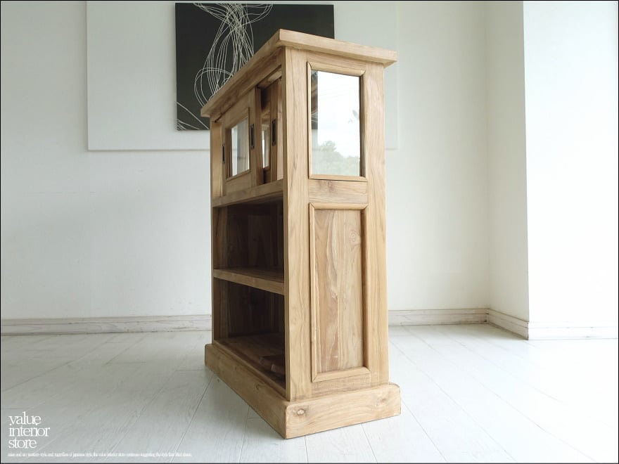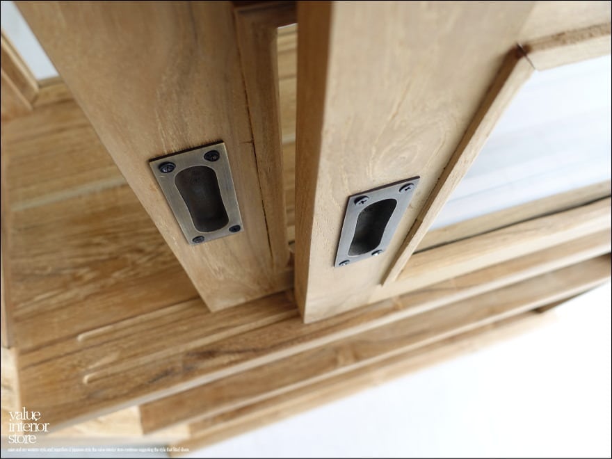 ・材質 : チーク総無垢材、ガラス、真鍮(引戸ハンドル)